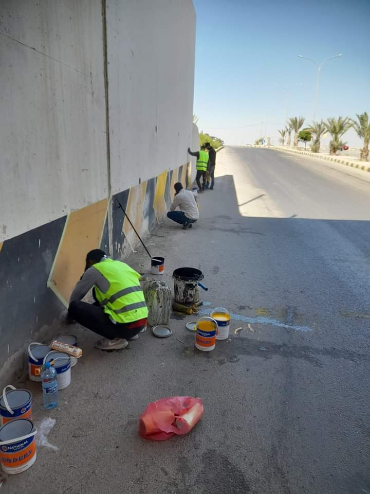 قسم الصيانة ببلدية الجيزة يقوم بأعمال دهان أطراف الشوارع والارصفة وتصميم مقاعد انتظار لمحطة انتقال حافلات الجيزة .